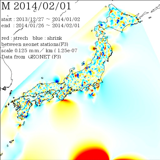 日本列島の伸び縮み 2014-02-01 現在