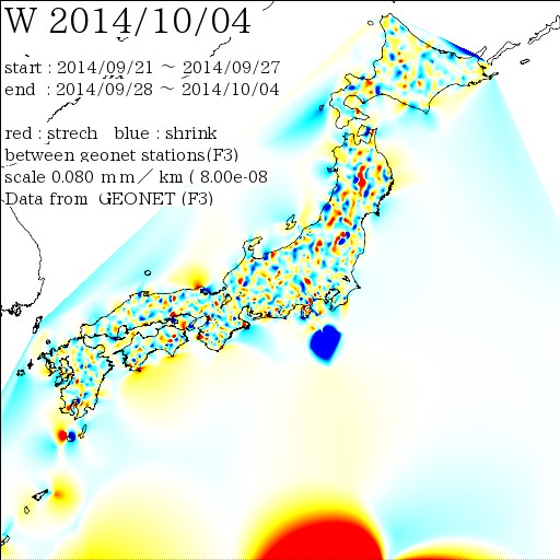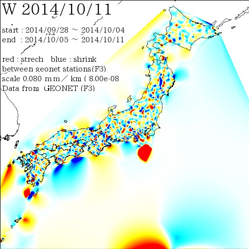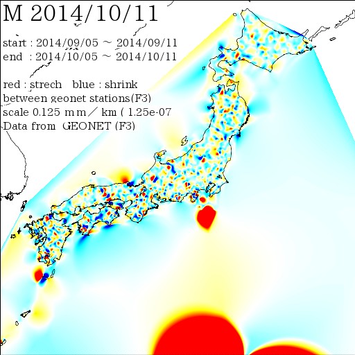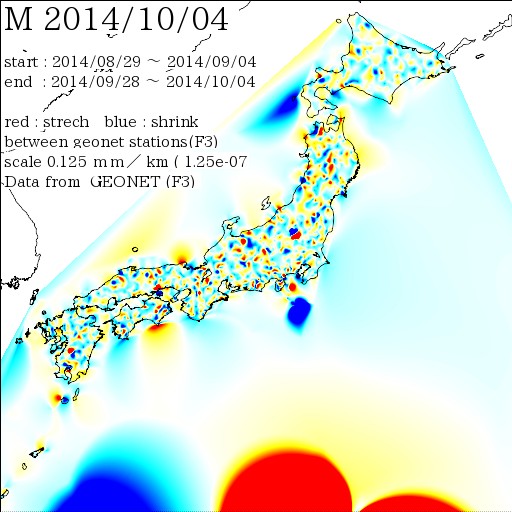 日本列島の伸び縮み 2014-10-11 現在