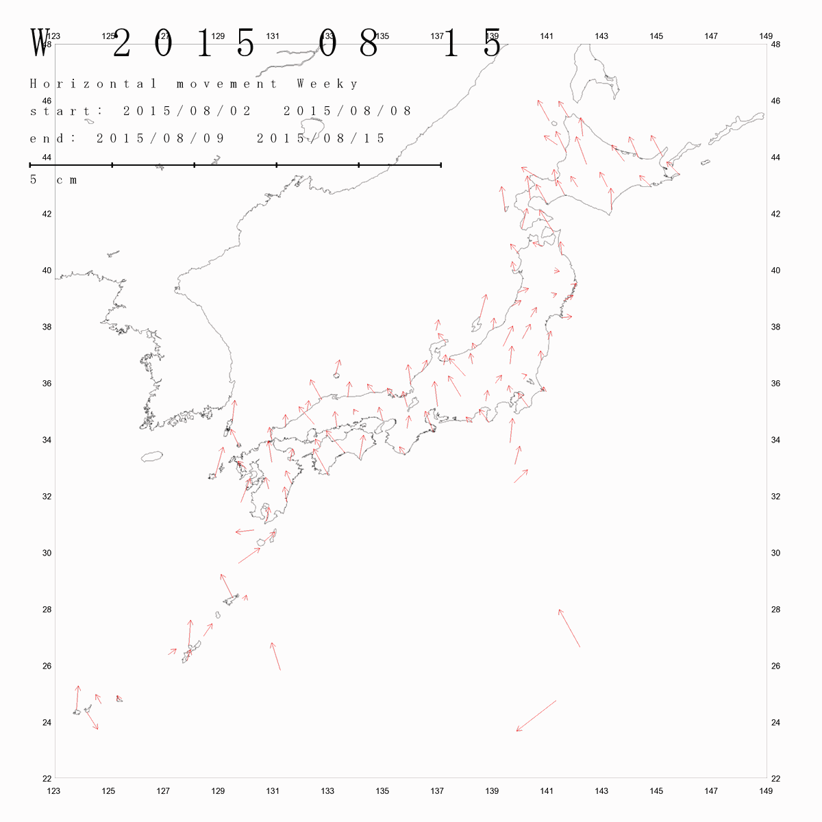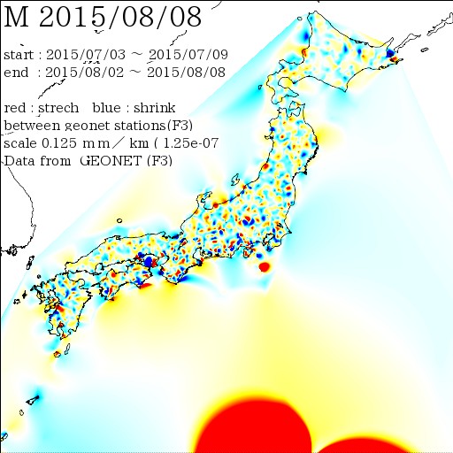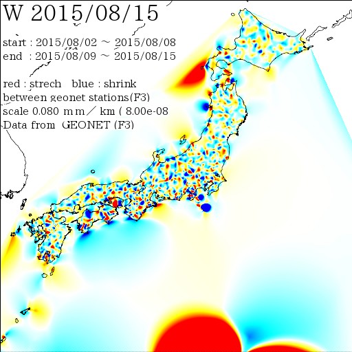 日本列島の伸び縮み 2015-08-15 現在 (F3)