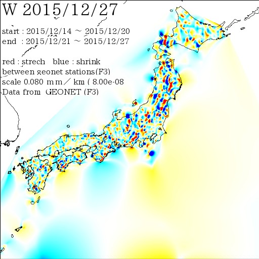 国土地理院電子基準点データ 日々の座標値(R3)速報解を利用して 日本列島の伸び縮みを作図しました